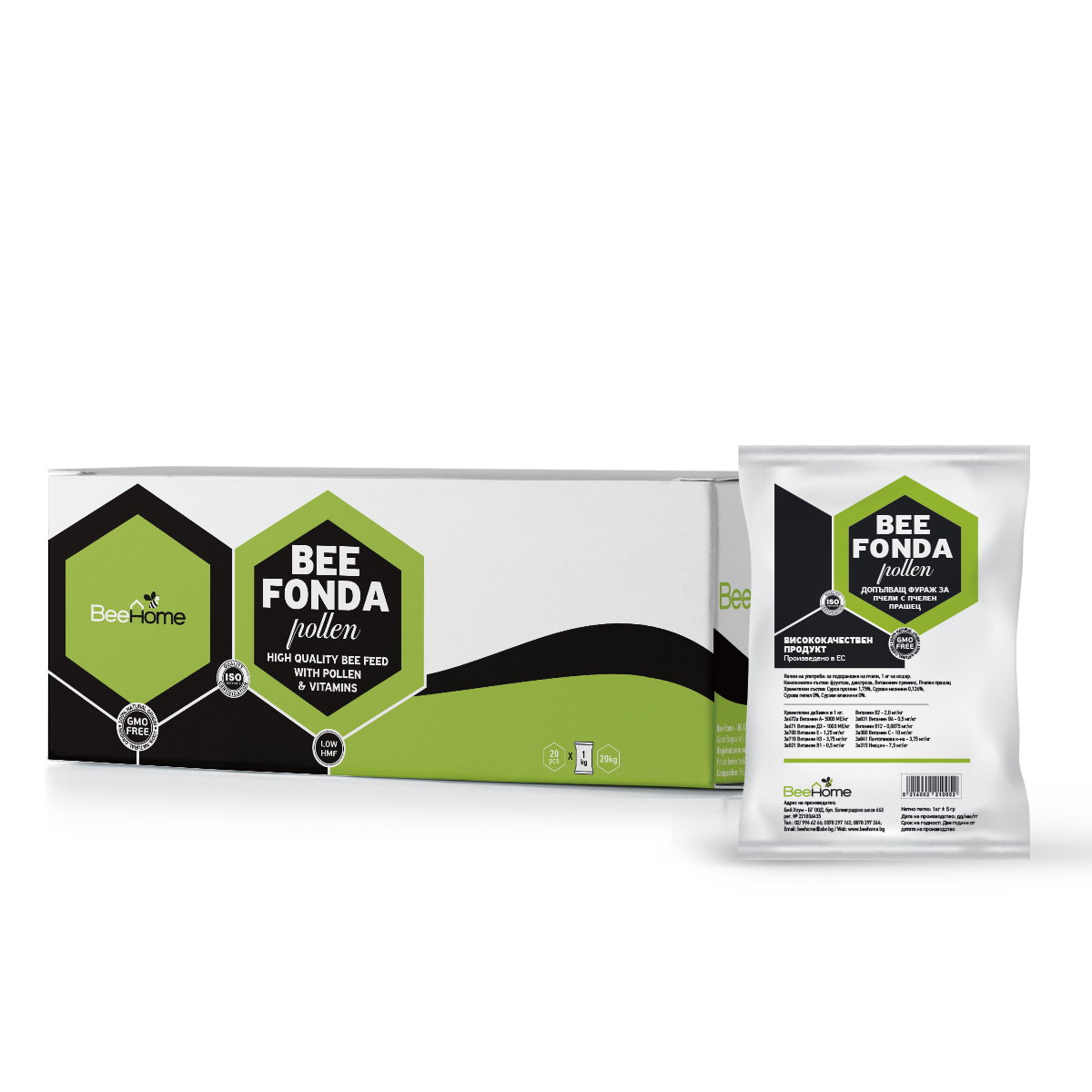 Sudėtis: fruktozė, dekstrozė, kiti cukrūs, vitaminai (A, B1, B2, B6, C3, E3, K3, B12) ir 8% natūralių žiedadulkių, išgrynintas vanduo, 100% invertuota. Be GMO. Žemas HMF.