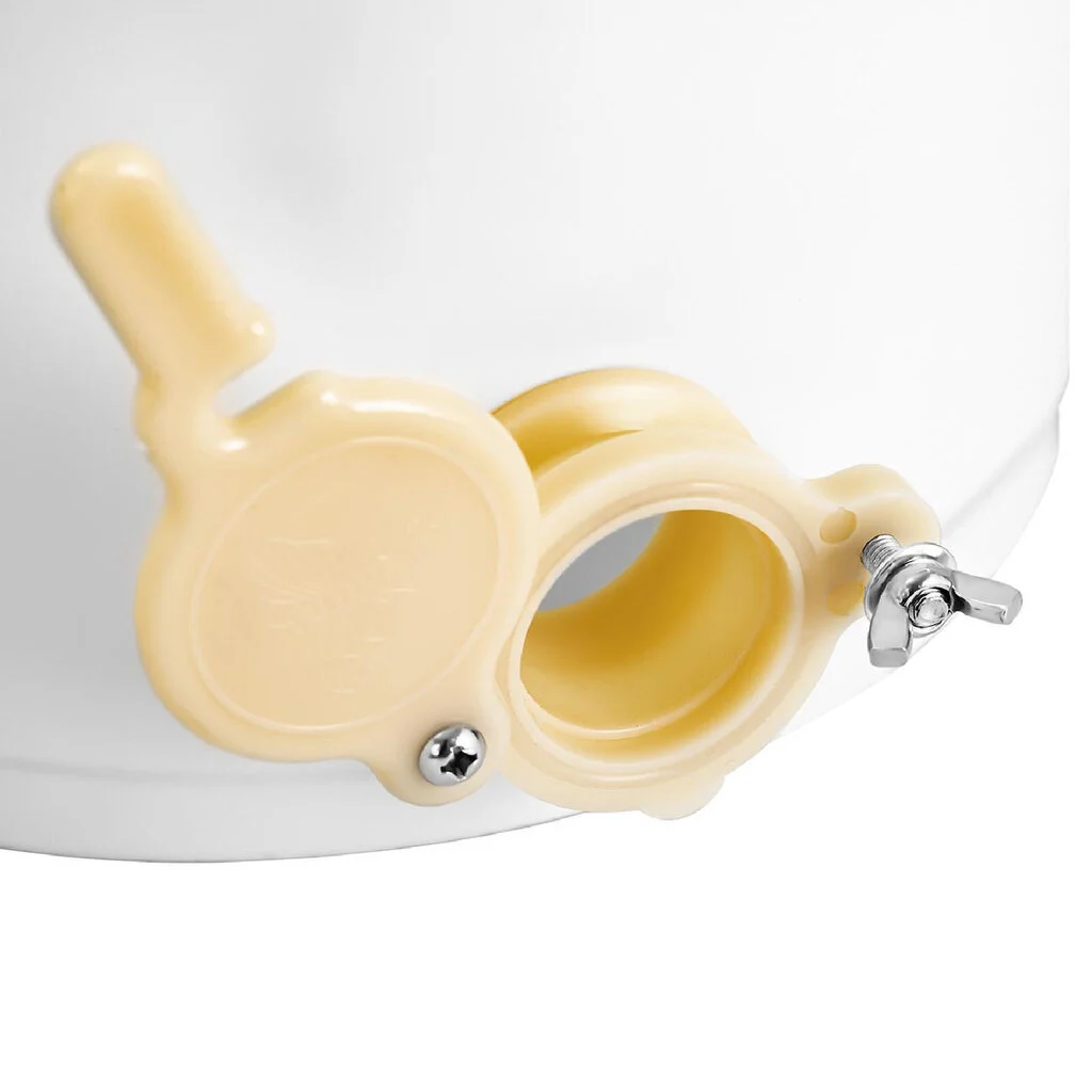 Fasavimo indas su kraneliu. Pagamintas iš plastiko, tinkančio sąlyčiui su maisto produktais.