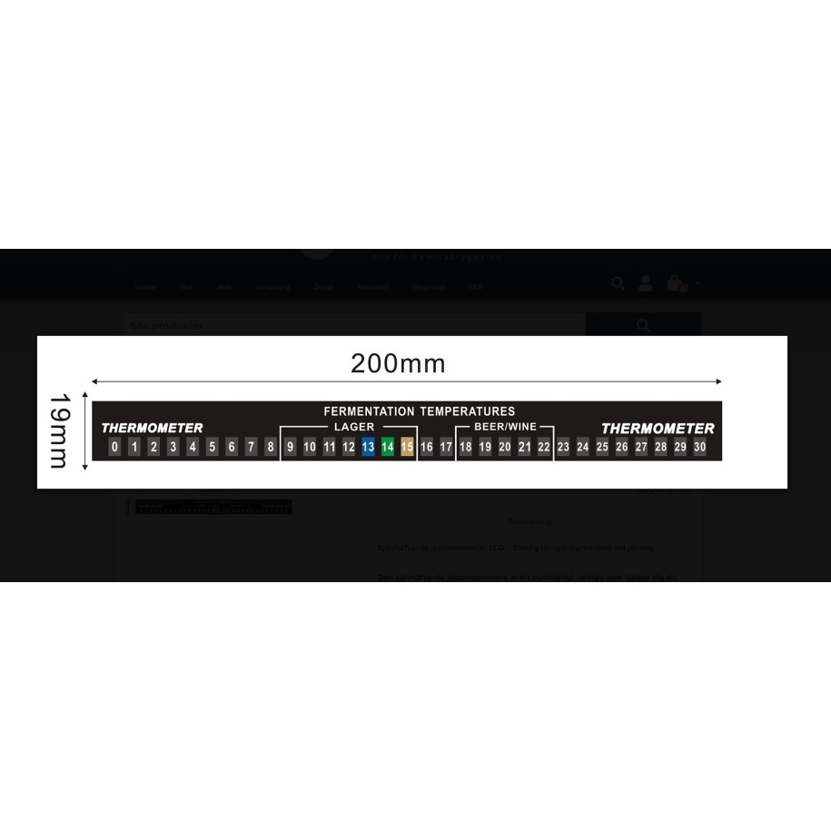 Priklijuojamas skaitmeninis, skystųjų kristalų temperatūros matuoklis 0-30˚C. Klijuojamas ant fermentacinio indo, jokių elementų ar įkrovimo, pastoviai rodo misos ar vyno temperatūrą.