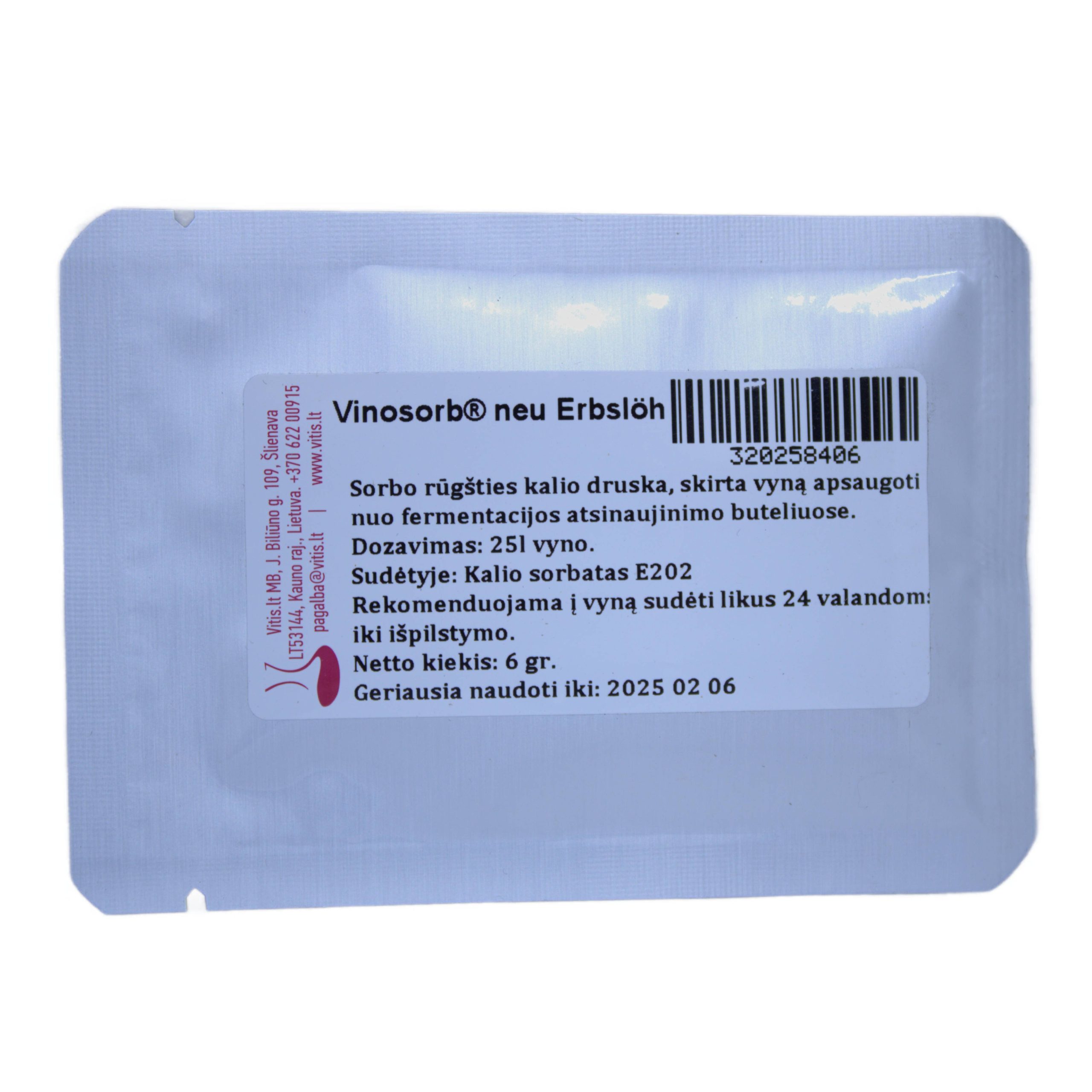 Pagal ES teisės aktus, maksimalus Vinosorb®neu kiekis 270 mg/l.